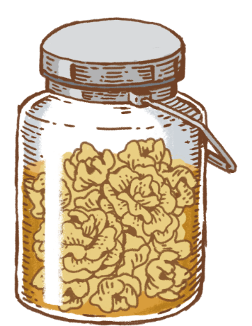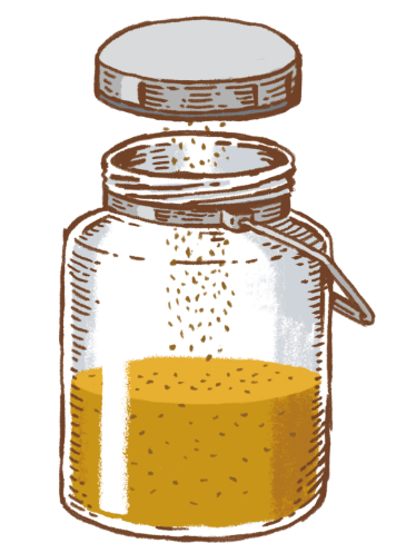 濾過後のオイルにさらにドライローズパウダーを加えじっくり漬け込む。(インフューズドオイル作成)