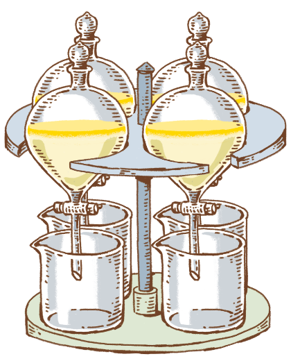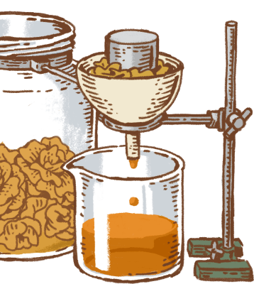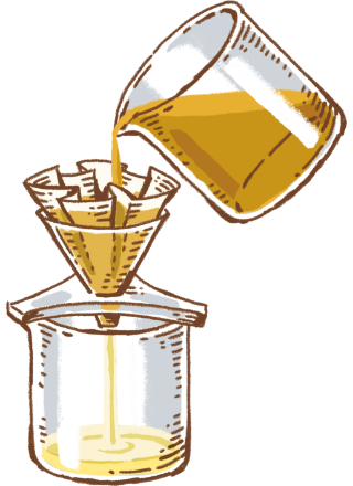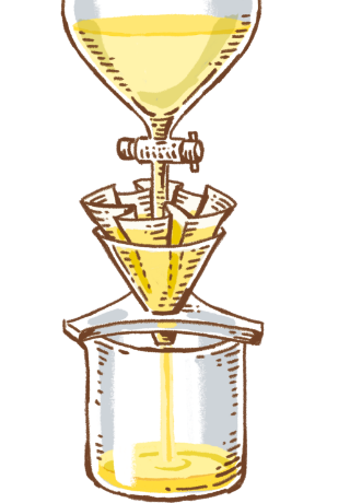 油分と水分を分液して、ローズエキスが溶け込んだオイルを濾過します。